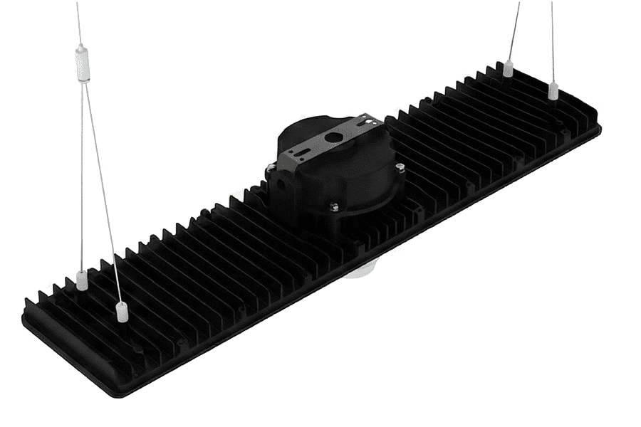 Conçus pour les hauteurs sous plafond de 6 à 12 mètres, nos suspensions industrielles (type « Gamelle » ou « Cloche ») remplacent avantageusement les anciennes lampes Iodure ou Vapeur de Sodium de 250W/400W.